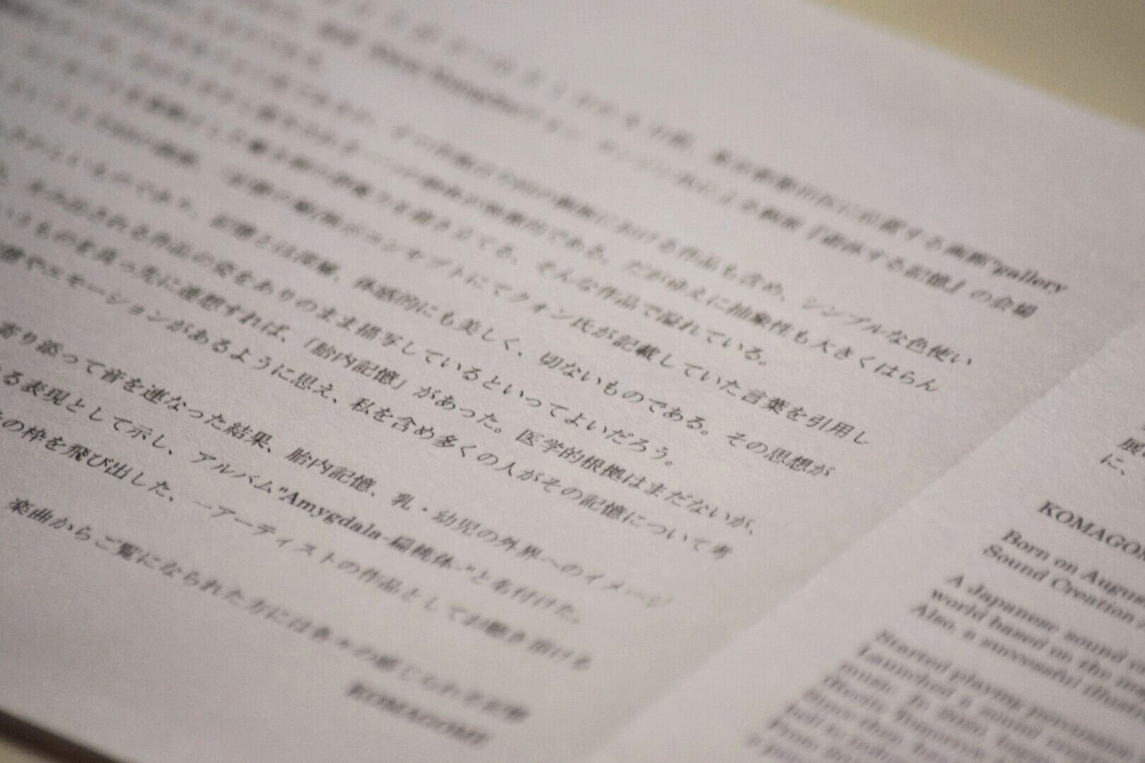 会場でお手にとって頂いた方には一時の回想を、楽曲からご覧になられた方には各々の感じられる記憶を、それぞれ楽しんで頂ければ音楽家冥利に尽きる。 KOMAGOME